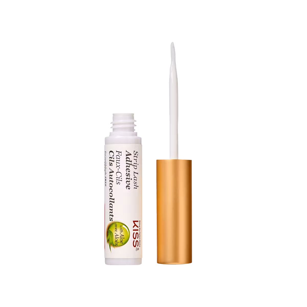 KISS strip lash adhesive -Vippelim har en børstespissapplikator for en perfekt tynn, presis limlinje. Formulert for overlegen, langvarig vippeslitasje, er dette supersterke vippelimet luktfritt, Cruelty Free, vanntett og fylt med beroligende aloe.